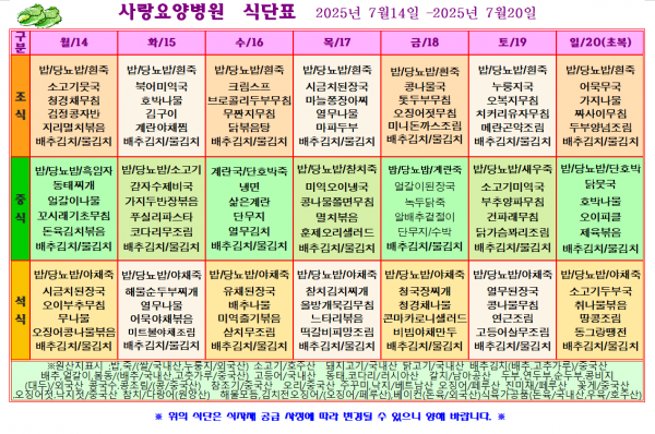 사랑요양병원 7월 셋째주 식단표