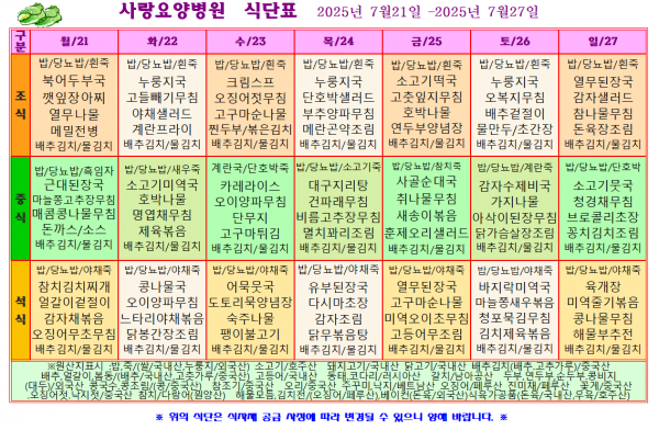 사랑요양병원 7월 넷째주 식단표