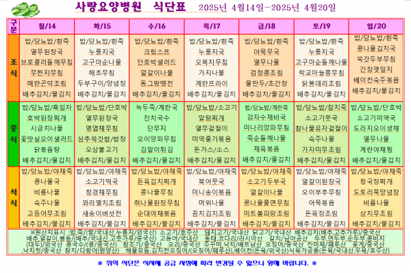 사랑요양병원 4월 셋째주 식단표