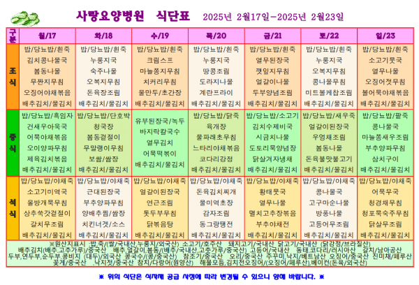 사랑요양병원 2월 셋째주 식단표