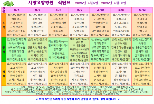 사랑요양병원 4월 둘째주 식단표